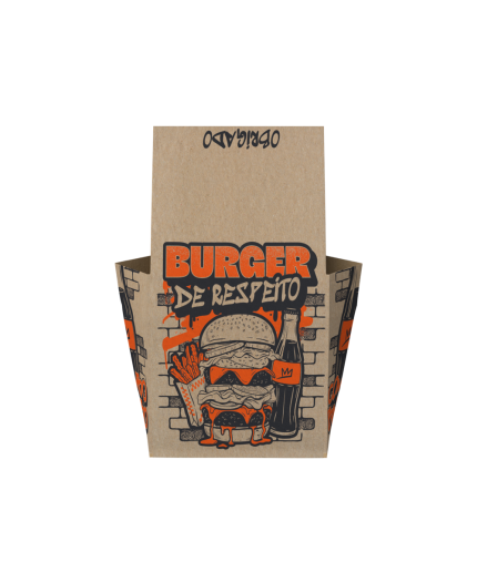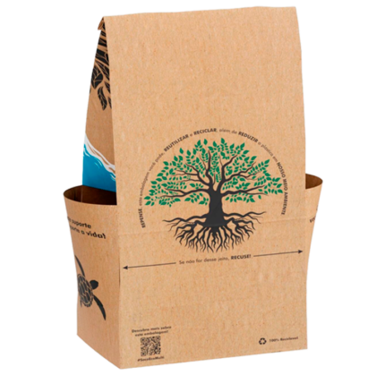 Embalagem ideal para delivery com suporte integrado para copos, latas e garrafas, garantindo mais segurança no transporte e evitando vazamentos.